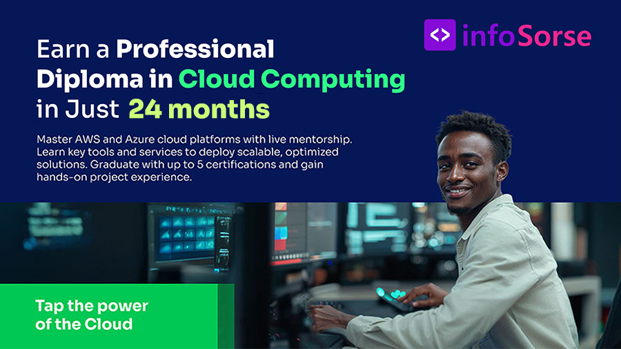 The 24-month Professional Diploma in Cloud Computing at InfoSorse equips learners with skills to excel in the growing field of cloud computing. Covering AWS and Azure, the program combines theory with practical expertise for real-world applications. With flexible enrollment options—online (weekday or weekend), self-paced, on-campus, or workplace training—students can choose the mode that fits their schedule while benefiting from live mentorship by industry experts.